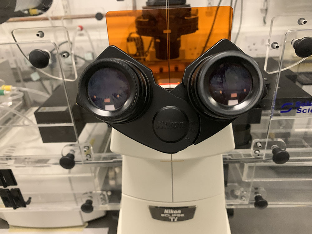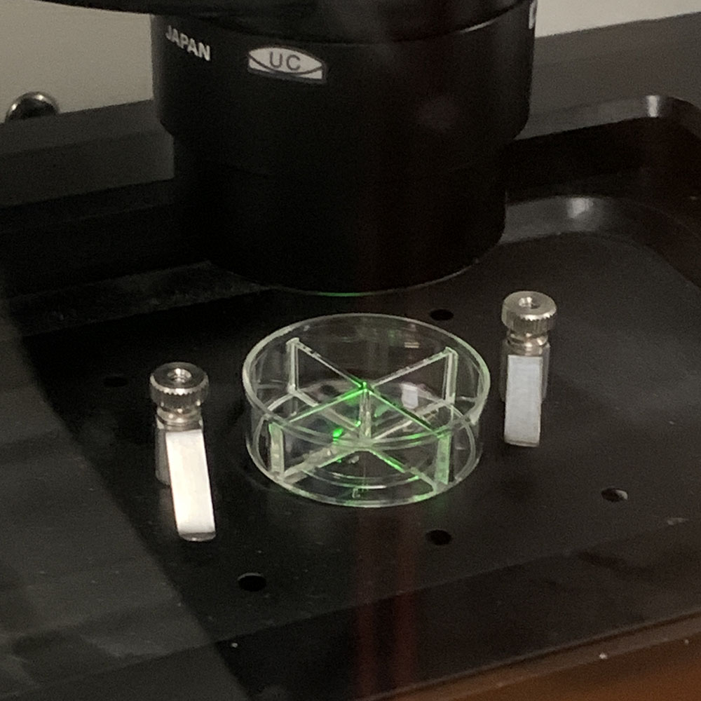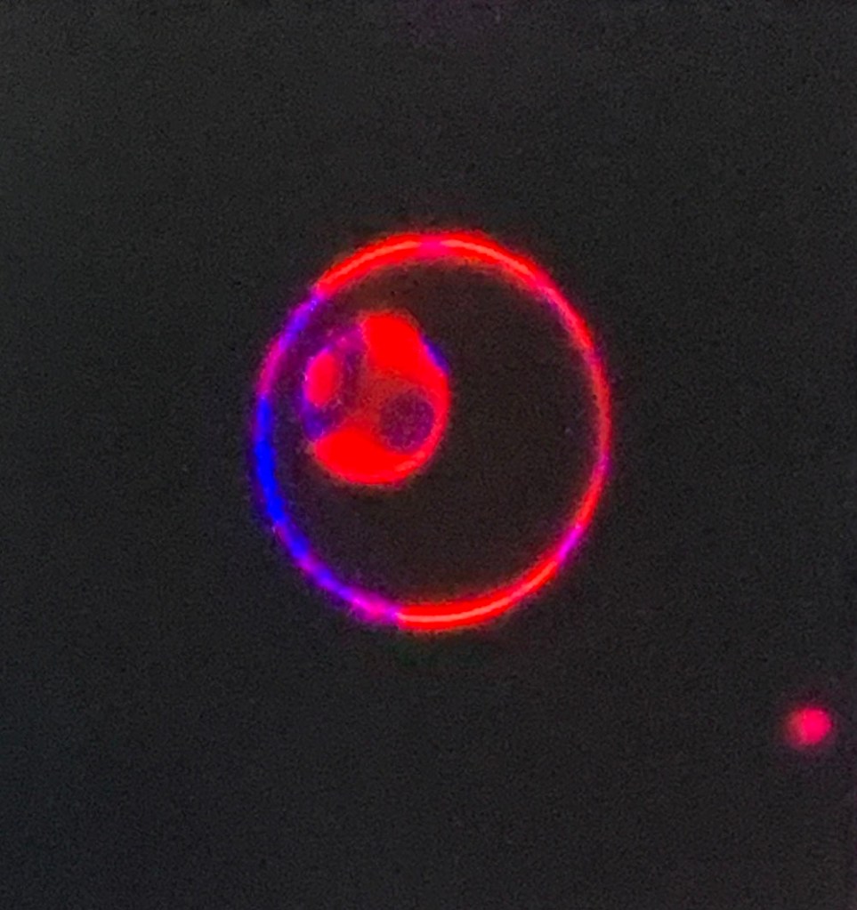 After Arindam and I had looked at various spheroids treated with different amounts of peptide, I went to spend some time with Dagmara. Using a simple optical microscope, we looked at samples of GPMVs that she had been creating from all of the different cell lines.