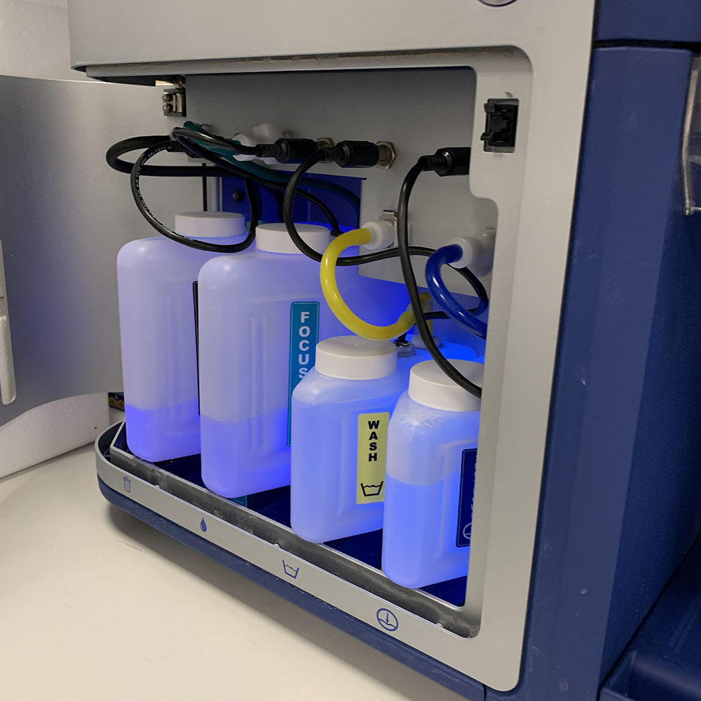 After that, I was handed into Arindam’s care. He had been prepping some experiments that we could run through the flow cytometer, part of the three day protocol that he had started before I even arrived in Leeds. The flow cytometer is an instrument which can differentiate very quickly between different cell states – which are tagged with different fluorescent labels – by passing them one by one through a narrow channel, shining a laser at them and assessing their luminosity, before chucking them back into the main sample. Amazing. Oddly, it made me think of counting sheep by making them jump over a gate.