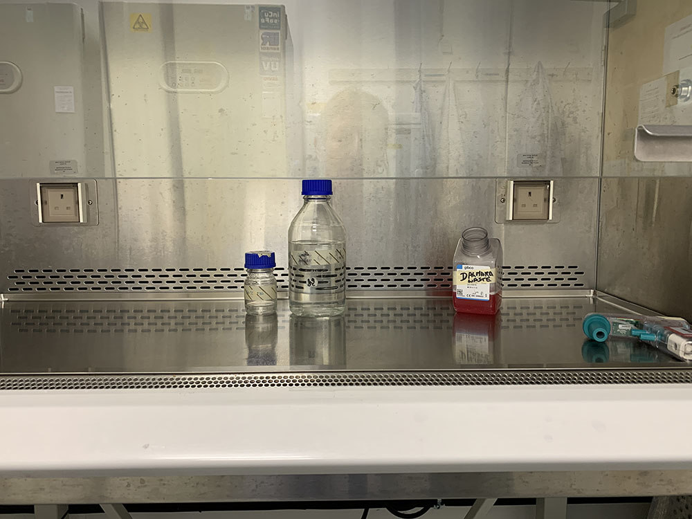 The team are regularly working with a number of different cells line. There are four in particular that the team are using as their ‘core’ cell lines. Three of these are different breast cancer cell lines, and one is a ‘normal’ cell line (although modified so that it will continue to grow in a lab). I am really interested in how the cell lines were chosen and some of the complexities and ethics of working with cell lines, so expect to hear more about this in a separate post. My initial reaction, though, to the normal-but-immortal cell line is this: if what distinguishes a normal cell from a cancer cell is that is a cancer cell will grow and reproduce without being properly programmed to die, then the existence of a normal-but-immortal cell line is something of a conundrum – not a total contradiction but not straightforward either.