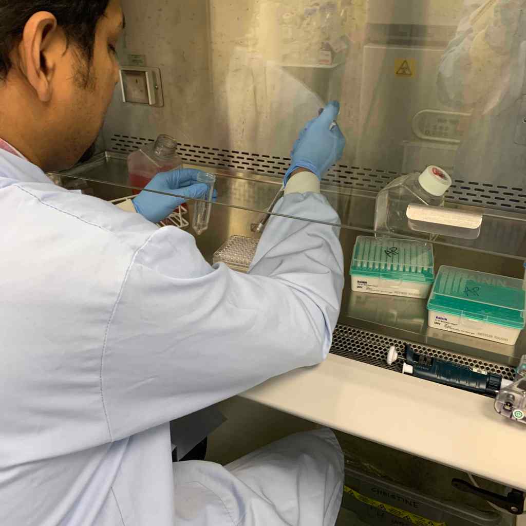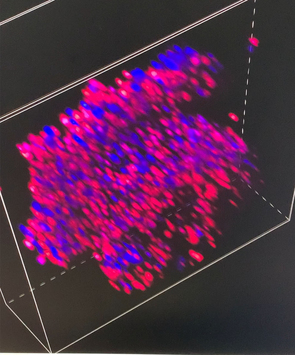 Later in the day Arindam showed me some spheroids to be treated with the peptide which we could then view through the confocal microscope to see how the peptide affected cells in a 3D configuration. In the previous experiment, the cells had been standalone, but if you are to treat cancer effectively, you are much more likely to have to treat clusters of cells. Using the normal-but-immortal cell line, Arindam had prepared the spheroids of clusters of cells – apparently the cancer cell lines don’t make good spheroids, just random bunches of cells that aren’t useful for testing.