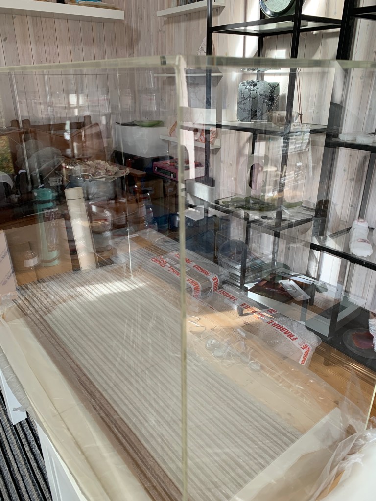 Eventually the base was built, and I could mount the stands that I had created to hold the glass elements and acrylic sheets. At this stage, I was working with the acrylic sheets still in their protective wrap – that only came off close to completion as acrylic scratches very easily. In fact, the case for the piece has been treated with an anti-abrasive coating to try and minimise exterior scratching, although it can’t prevent it altogether.