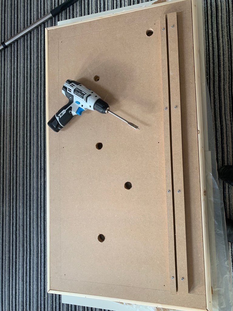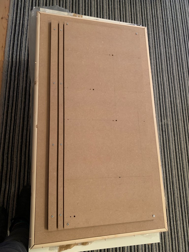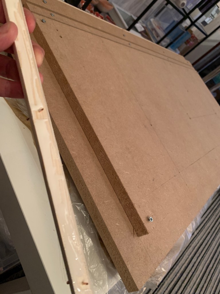 The slats at the back of the base would hold the acrylic sheets used to mount the backdrop images. These had to be carefully measured so they would hold the sheets firmly in place.