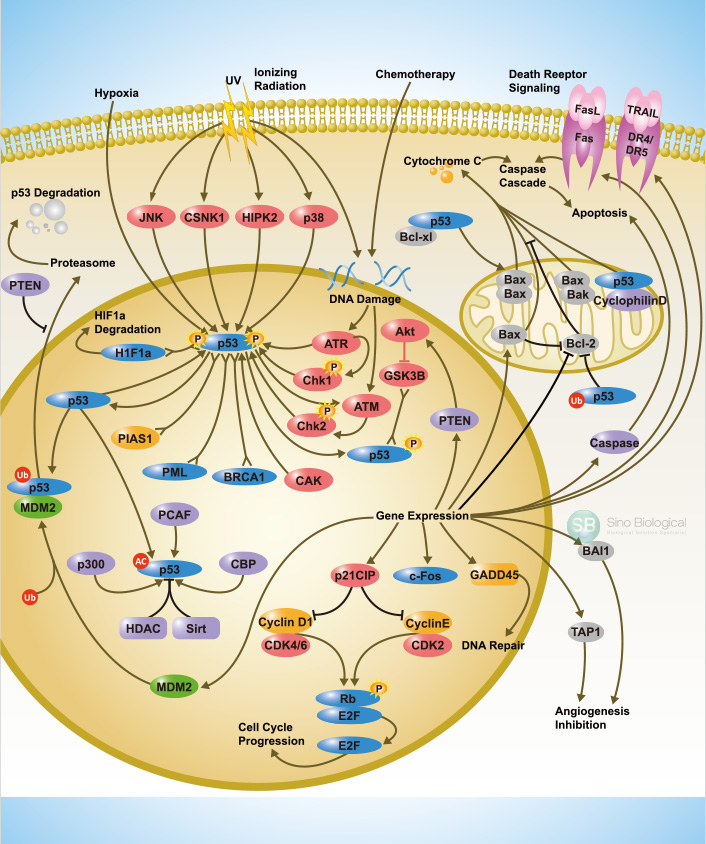 On a pathway there can be a gateway, such as the gateway that cells go through on the TP53 pathway, for example, in order to know if they should go forward to replicate or stop and die. This is a gateway that can become very ineffective in cancer – cancer cells do not die in the same way as normal cells – and may be related to changes or mutations of the TP53 gene.